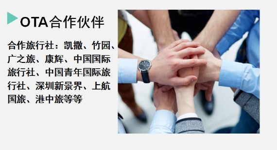 合作旅行社:凯撒、竹园、广之旅、康辉、中国国际旅行社、中国青年国际旅行社、深圳新景界、上航国旅、港中旅等等。