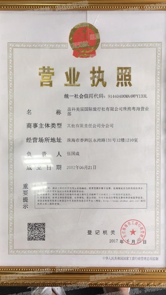 盈科美辰国际旅行社有限公司珠海粤海营业部