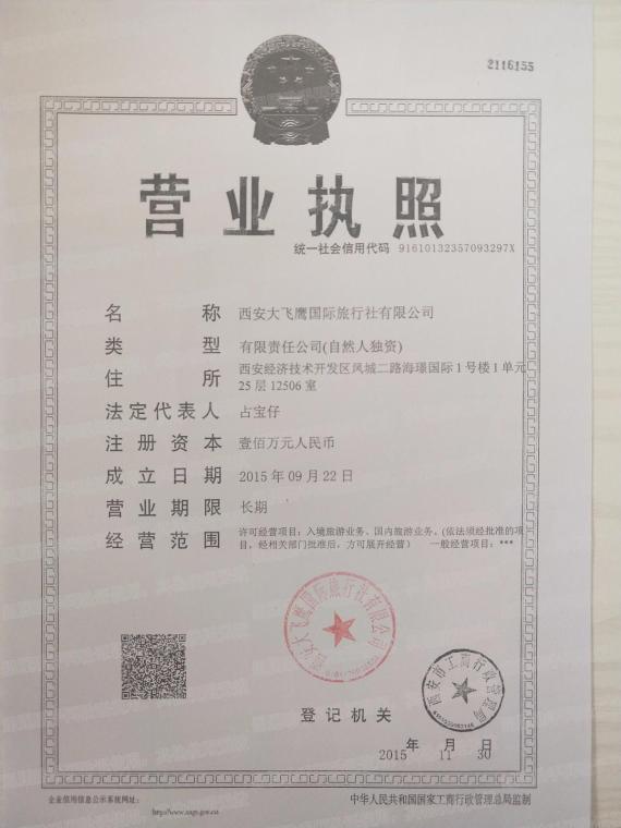企业全称:西安大飞鹰国际旅行社有限公司