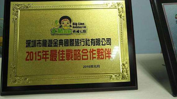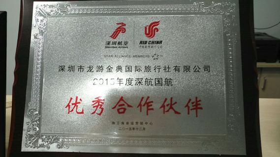 2015年度荣获深航国旅颁发的优秀合作伙伴;