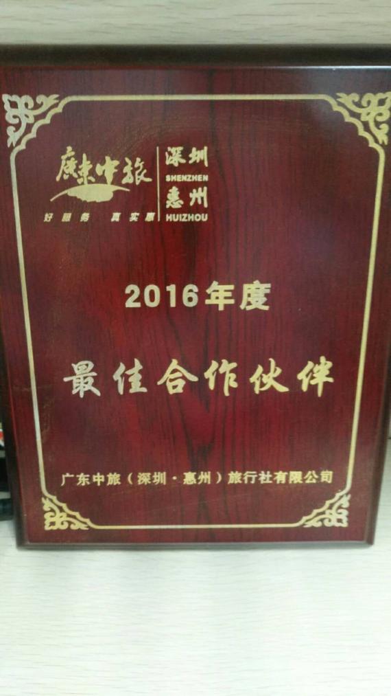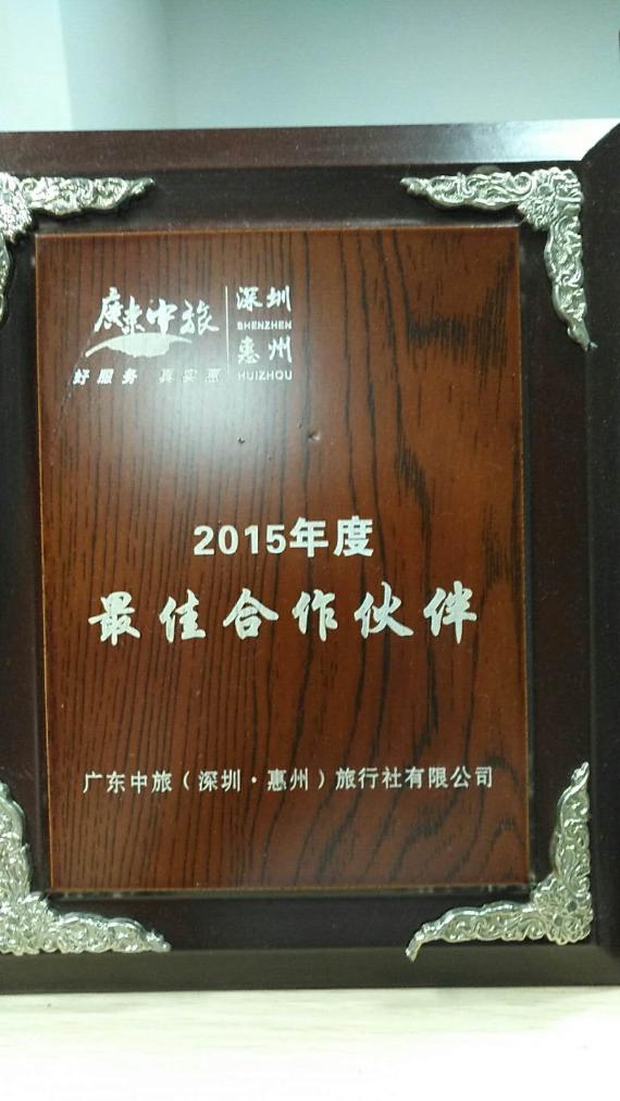 2015年度荣获广东中旅(深圳·惠州)有限公司颁发的最佳合作伙伴;