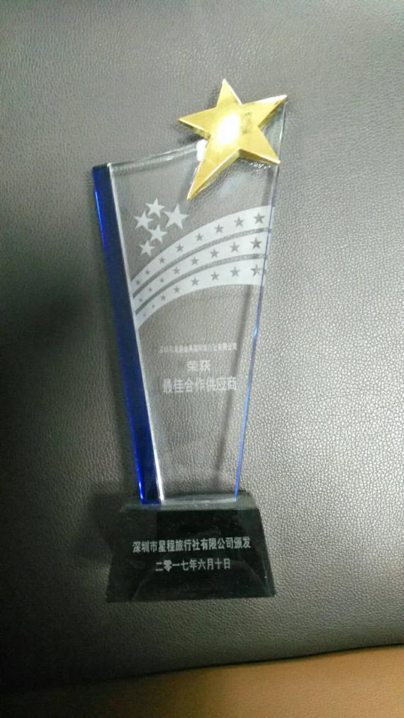 2017年荣获深圳市星程旅行社有限公司颁发的最佳合作供应商。