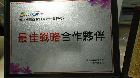 2015年荣获广东旅游有限公司颁发的最佳战略合作伙伴;