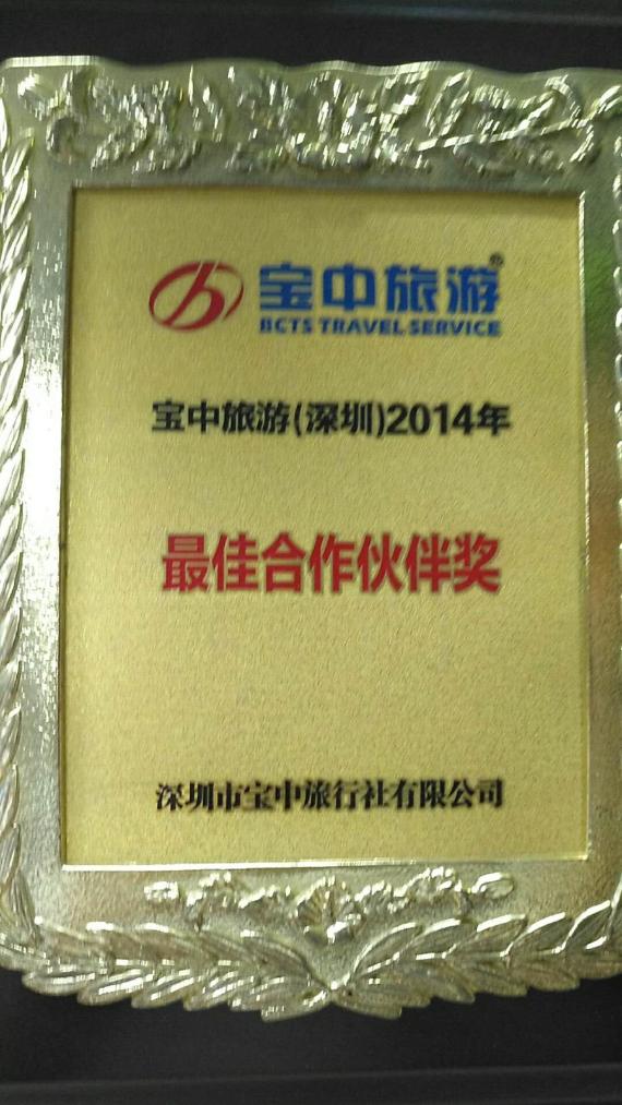 2014年荣获宝中旅游(深圳)颁发的最佳合作伙伴奖;