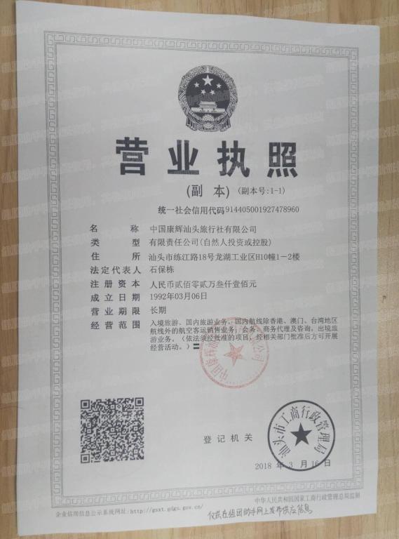 企业全称:中国康辉汕头旅行社有限公司